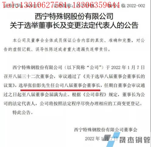 免責聲明:本網站(山東聊城晟杰無縫鋼管廠www.uldzz.cn)刊載的““70后”張伯影任西寧特鋼董事長”等均源于網絡,版權歸原作者所有,且僅代表原作者觀點,本文所載信息僅供參考。轉載僅為學習與交流之目的,如無意中侵犯您的合法權益,請及時聯系刪除。本網站刊登此篇文章并不意味著本站贊同其觀點或證實其內容的真實性,我們不對其科學性、嚴肅性等作任何形式的保證。如果侵犯了您的版權,請盡快聯系我們予以撤銷,謝謝合作!