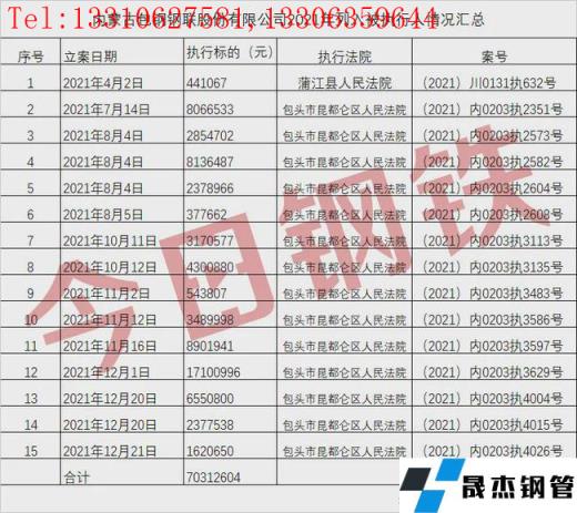 免責(zé)聲明:本網(wǎng)站(山東聊城晟杰無縫鋼管廠www.uldzz.cn)刊載的“超7000萬!包鋼股份年內(nèi)15次被法院執(zhí)行!”等均源于網(wǎng)絡(luò),版權(quán)歸原作者所有,且僅代表原作者觀點(diǎn),本文所載信息僅供參考。轉(zhuǎn)載僅為學(xué)習(xí)與交流之目的,如無意中侵犯您的合法權(quán)益,請(qǐng)及時(shí)聯(lián)系刪除。本網(wǎng)站刊登此篇文章并不意味著本站贊同其觀點(diǎn)或證實(shí)其內(nèi)容的真實(shí)性,我們不對(duì)其科學(xué)性、嚴(yán)肅性等作任何形式的保證。如果侵犯了您的版權(quán),請(qǐng)盡快聯(lián)系我們予以撤銷,謝謝合作!