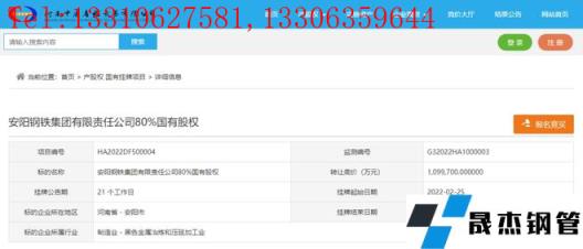 免責聲明:本網站(山東聊城晟杰無縫鋼管廠www.uldzz.cn)刊載的“混改倒計時!安鋼集團110億掛牌轉讓!二十余鋼企有接手資格?”等均源于網絡,版權歸原作者所有,且僅代表原作者觀點,本文所載信息僅供參考。轉載僅為學習與交流之目的,如無意中侵犯您的合法權益,請及時聯系刪除。本網站刊登此篇文章并不意味著本站贊同其觀點或證實其內容的真實性,我們不對其科學性、嚴肅性等作任何形式的保證。如果侵犯了您的版權,請盡快聯系我們予以撤銷,謝謝合作!