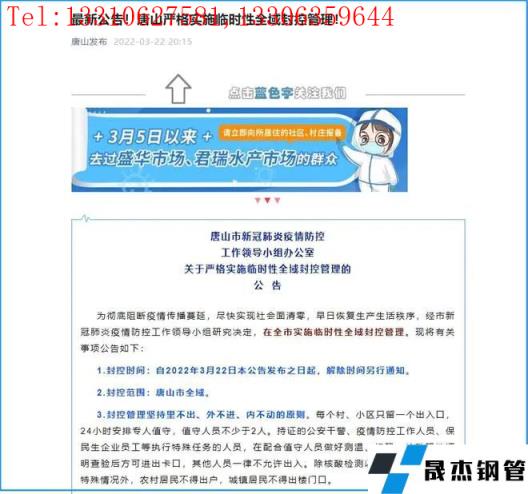 免責(zé)聲明:本網(wǎng)站(山東聊城晟杰無(wú)縫鋼管廠www.uldzz.cn)刊載的“突發(fā)!唐山全域性封控,鋼市影響升級(jí)”等均源于網(wǎng)絡(luò),版權(quán)歸原作者所有,且僅代表原作者觀點(diǎn),本文所載信息僅供參考。轉(zhuǎn)載僅為學(xué)習(xí)與交流之目的,如無(wú)意中侵犯您的合法權(quán)益,請(qǐng)及時(shí)聯(lián)系刪除。本網(wǎng)站刊登此篇文章并不意味著本站贊同其觀點(diǎn)或證實(shí)其內(nèi)容的真實(shí)性,我們不對(duì)其科學(xué)性、嚴(yán)肅性等作任何形式的保證。如果侵犯了您的版權(quán),請(qǐng)盡快聯(lián)系我們予以撤銷,謝謝合作!