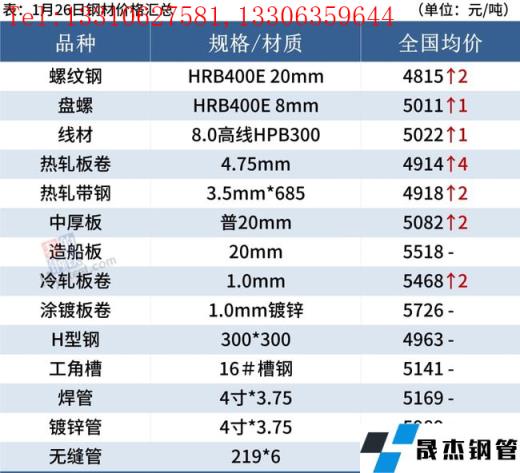 1月26日,國內(nèi)鋼材市場小幅上漲為主,唐山鋼坯出廠價格穩(wěn)報4480元/噸。成交方面,工程項目大多進入到收尾階段,新一輪降溫雨水天氣來臨,成交整體繼續(xù)縮量。