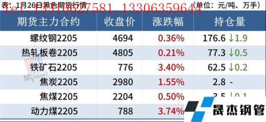 焦炭:1月26日,焦炭市場暫穩(wěn)運行。山西長治地區(qū)1月30日-3月13日冬奧會期間,區(qū)域內(nèi)焦企結(jié)焦時間延長至72小時限產(chǎn)政策影響;個別焦企明后兩天,環(huán)保管控結(jié)焦時間將延長至72小時,大部分焦企暫無接到冬奧會相關限產(chǎn)通知。本周焦企開工小幅上升,焦炭產(chǎn)量增加,除部分受雨雪天氣影響出貨受阻外,其余焦企多保持低庫存或零庫存運行,下游無縫鋼管廠家多正常接貨,部分低庫存無縫鋼管廠家節(jié)前仍有一定補庫需求,短期無縫鋼管廠家需求尚可,后期無縫鋼管廠家焦化受冬奧會影響均有限產(chǎn)預期,預計短期內(nèi)焦炭市場繼續(xù)偏穩(wěn)運行。