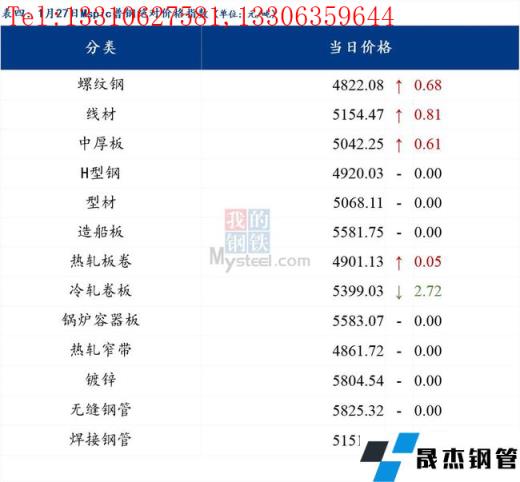 免責聲明:本網站(山東聊城晟杰無縫鋼管廠www.uldzz.cn)刊載的“2022年01月27日日報:鋼材_無縫鋼管價格指數上漲0.19元/噸”等均源于網絡,版權歸原作者所有,且僅代表原作者觀點,本文所載信息僅供參考。轉載僅為學習與交流之目的,如無意中侵犯您的合法權益,請及時聯系刪除。本網站刊登此篇文章并不意味著本站贊同其觀點或證實其內容的真實性,我們不對其科學性、嚴肅性等作任何形式的保證。如果侵犯了您的版權,請盡快聯系我們予以撤銷,謝謝合作!