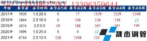 小編匯總近5年春節(jié)后四周彩涂板卷均價變化情況,以供參考。