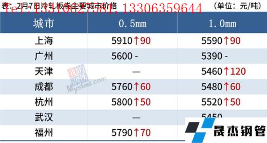 冷軋板卷:2月7日,全國24個主要城市1.0mm冷卷均價5525元/噸,較節前(1月30日)上漲57元/噸。據市場反饋,今日大部分鋼貿企業未全面復工,大部分陸續要8-10號陸續進入復工,當前市場暫無明顯成交,受原材料價格提漲,冷軋貿易商先提漲價格,市場呈有價無市狀態?;久婵矗刂?號調研數據顯示,冷軋無縫厚壁鋼管廠家產能利用率79.10%,周環比減少2.31%;廠庫周環比增加7.16萬噸,社庫周環比增加8.45,月環比增加12.30萬噸,年同比增加14.03萬噸,基本面壓力尚可。預計8日全國冷軋板卷現貨價格多震蕩上調為主。