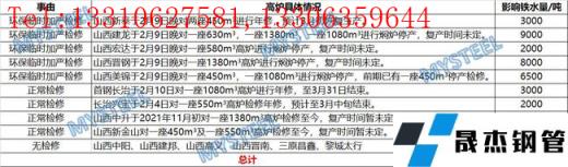 我網(wǎng)前兩日發(fā)布消息“河南、山東及河北唐山地區(qū)部分無縫厚壁鋼管廠家接到臨時(shí)限產(chǎn)加嚴(yán)通知。會(huì)在原有限產(chǎn)基礎(chǔ)上燒結(jié)全停,個(gè)別無縫厚壁鋼管廠家有新增高爐檢修,2月8日下午18點(diǎn)開始執(zhí)行,預(yù)計(jì)11日解除?!睂?duì)此,我網(wǎng)進(jìn)行了進(jìn)一步調(diào)研,山西部分區(qū)域也受之影響進(jìn)行燜爐,具體情況如下: