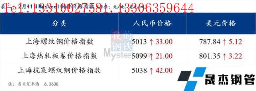 分地區(qū)方面,上海螺紋鋼價格指數(shù)5013,上漲33.0;上海熱軋板卷價格指數(shù)5099,上漲21.0。(單位:元/噸)