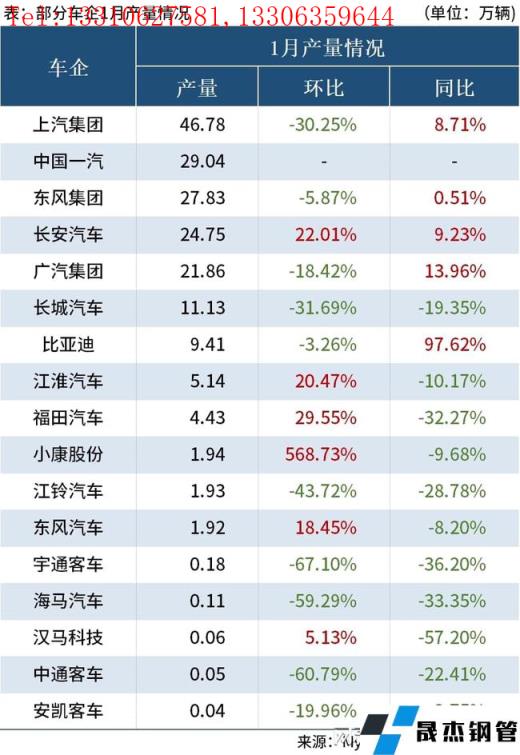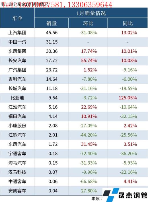 免責聲明:本網站(山東聊城晟杰無縫鋼管廠www.uldzz.cn)刊載的“1月我國汽車產銷降幅明顯,多數車企呈現雙位數下跌”等均源于網絡,版權歸原作者所有,且僅代表原作者觀點,本文所載信息僅供參考。轉載僅為學習與交流之目的,如無意中侵犯您的合法權益,請及時聯系刪除。本網站刊登此篇文章并不意味著本站贊同其觀點或證實其內容的真實性,我們不對其科學性、嚴肅性等作任何形式的保證。如果侵犯了您的版權,請盡快聯系我們予以撤銷,謝謝合作!