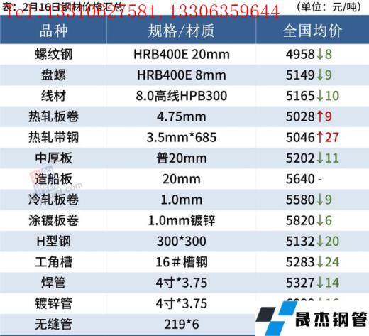 建筑厚壁無縫鋼管:2月16日,全國31個主要城市20mm三級抗震螺紋鋼均價4958元/噸,較上個交易日跌8元/噸。短期來看,隨著原料價格的走弱,需求持續(xù)低迷,市場悲觀情緒漸濃,貿(mào)易商低價套現(xiàn)操作較為普遍。元宵之后下游工地存在一定復工預期,但未來幾日又將持續(xù)雨水天氣,需求釋放力度仍有待考證,預計17日國內(nèi)建筑厚壁無縫鋼管價格或將止跌企穩(wěn)。