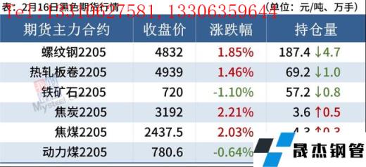 熱軋板卷:2月16日,全國24個主要城市4.75mm熱軋板卷均價5028元/噸,較上個交易日上漲9元/噸。早盤維穩(wěn),現(xiàn)貨報價部分地區(qū)補跌,成交表現(xiàn)偏弱,午后期卷上漲,下游采購量稍有好轉,全天成交一般。綜合來看,目前冬奧會正在舉行,全國兩會等也即將召開,在無縫厚壁鋼管廠家限產(chǎn)擾動下熱卷產(chǎn)量下降,壓縮熱卷現(xiàn)貨供應,低供應格局給予卷價一定支撐。但后市需要關注冬奧會后,供應是否會出現(xiàn)階段性回升,并且月底前需求沒有如期兌現(xiàn),屆時供需矛盾將會凸顯。綜合來看,預計17日熱軋板卷價格或震蕩偏強為主。