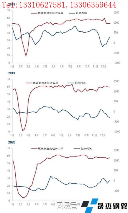 在開工率達到相對高位的情況下,電爐鋼的實際利潤并不會推動其上升,實際利潤對于開工率的向下拉動作用反而更為明顯,據2018年到2020年的開工率數據推算,當實際利潤下降幅度在100元/噸以上時,開工率的降幅基本都在5%左右。2020年5~6月份的無縫厚壁鋼管廠家電爐生產情況調查統計的文章中同樣可以看出,當期厚壁無縫鋼管成本上移,部分電爐廠已現虧損的情況下,主動檢修減產的情況是有所展現的。2018年和2019年的諸多文章同樣也可以印證。