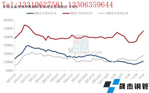 節(jié)后市場(chǎng)復(fù)工及時(shí),需求恢復(fù)也比較樂觀;加之雖然庫(kù)存雖然出現(xiàn)明顯增加,但民營(yíng)無(wú)縫厚壁鋼管廠家資源并不十分充裕,部分熱軋還存在規(guī)格缺貨現(xiàn)象,貿(mào)易商手中庫(kù)存并不算高,多集中在無(wú)縫厚壁鋼管廠家前置及代理商倉(cāng)庫(kù)。據(jù)調(diào)研,2022年2月10日全國(guó)主流市場(chǎng)不銹鋼社會(huì)庫(kù)存總量79.04萬(wàn)噸,較上期(1月27日)增加18%;其中300系不銹鋼庫(kù)存總量47.95萬(wàn)噸,較上期增14.83%。