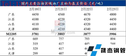具體來看下表最近4個(gè)交易日豆粕期現(xiàn)貨價(jià)格,以沿海主要區(qū)域廣東、江蘇、山東、天津?yàn)槔?。出現(xiàn)豆粕現(xiàn)貨單邊價(jià)格與基差價(jià)格齊飛盛況,怎一“漲”’字了得?豆粕現(xiàn)貨價(jià)格每個(gè)交易日超100元/噸的速度飛奔。據(jù)農(nóng)產(chǎn)品數(shù)據(jù)顯示,沿海主要區(qū)域2月18-2月22日現(xiàn)貨價(jià)格由4080-4450元/噸,漲至4430-4800元/噸,累計(jì)上漲350元/噸,累計(jì)漲幅7.87%-8.58%;現(xiàn)貨基差價(jià)格由299-699元/噸,漲至524-894元/噸,累計(jì)上漲195-225元/噸,累計(jì)漲幅2.79-7.53%。