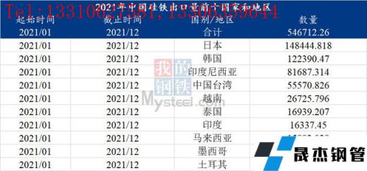 三、2021年中國(guó)硅鐵出口情況