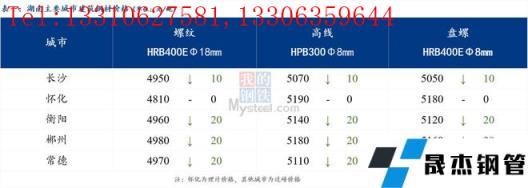 湖南大部分城市價格下跌10-20元/噸不等,市場心態轉弱,高低價差擴大。
