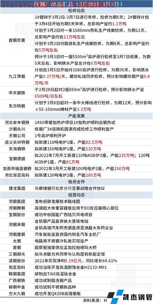 據不完全統計,本周(2月28日-3月4日)有4家無縫厚壁鋼管廠家發布檢修動態,具體如下: