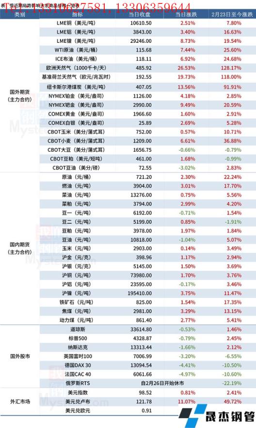 免責聲明:本網站(山東聊城晟杰無縫鋼管廠www.uldzz.cn)刊載的“2022年03月07日早讀:周末唐山鋼坯累漲60元,國際油價開盤升破130美元”等均源于網絡,版權歸原作者所有,且僅代表原作者觀點,本文所載信息僅供參考。轉載僅為學習與交流之目的,如無意中侵犯您的合法權益,請及時聯系刪除。本網站刊登此篇文章并不意味著本站贊同其觀點或證實其內容的真實性,我們不對其科學性、嚴肅性等作任何形式的保證。如果侵犯了您的版權,請盡快聯系我們予以撤銷,謝謝合作!