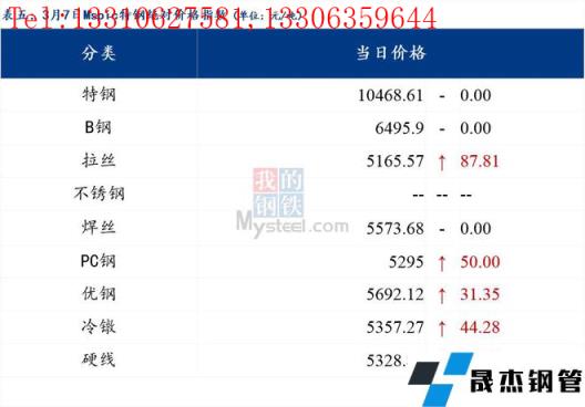 免責聲明:本網站(山東聊城晟杰無縫鋼管廠www.uldzz.cn)刊載的“2022年03月07日日報:鋼材_無縫鋼管價格指數上漲97.12元/噸”等均源于網絡,版權歸原作者所有,且僅代表原作者觀點,本文所載信息僅供參考。轉載僅為學習與交流之目的,如無意中侵犯您的合法權益,請及時聯系刪除。本網站刊登此篇文章并不意味著本站贊同其觀點或證實其內容的真實性,我們不對其科學性、嚴肅性等作任何形式的保證。如果侵犯了您的版權,請盡快聯系我們予以撤銷,謝謝合作!