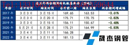 庫存方面,歷年兩會期間,冷軋總庫存都是呈現(xiàn)一個(gè)下降的態(tài)勢,普遍降幅在2%以上,且其庫存總體水平皆高于當(dāng)年全國庫存均值。