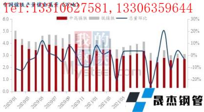2022年2月國內(nèi)主要體現(xiàn)為中高鎳鐵小幅減量、低鎳鐵小幅增量。中高鎳鐵方面,雖然廣西及山東個(gè)別鎳鐵冶煉廠2月產(chǎn)量恢復(fù),但河北個(gè)別鎳鐵冶煉廠受到冬奧會(huì)影響停產(chǎn)至2月20號(hào),遼寧、江蘇部分工廠2月產(chǎn)線檢修;低鎳鐵方面,雖然河南某無縫厚壁鋼管廠家2月僅一臺(tái)高爐生產(chǎn),但廣東某無縫厚壁鋼管廠家高爐2月復(fù)產(chǎn),低鎳鐵總體呈環(huán)比增長情況。