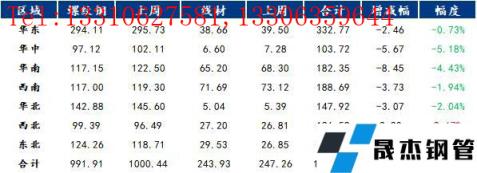 表1:全國建筑厚壁無縫鋼管價格匯總