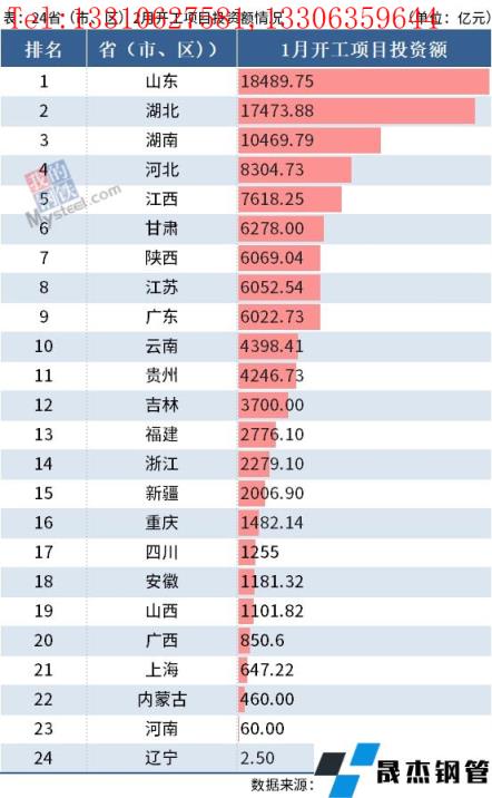 資料顯示,2月山東、湖北、湖南3省開工總投資額超萬億元,分別為1.85萬億元、1.75萬億元、1.05萬億元。