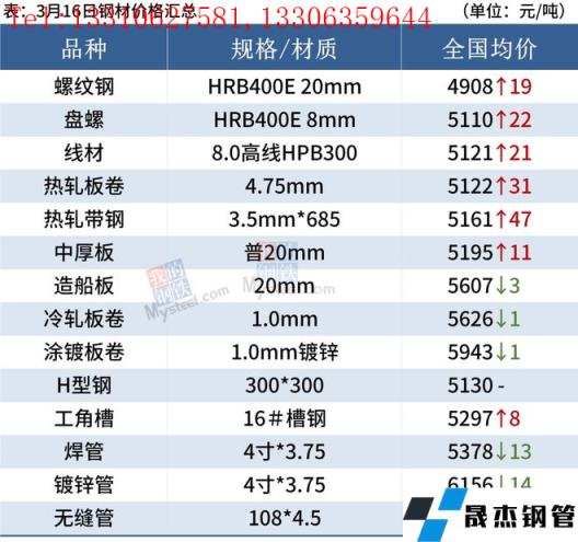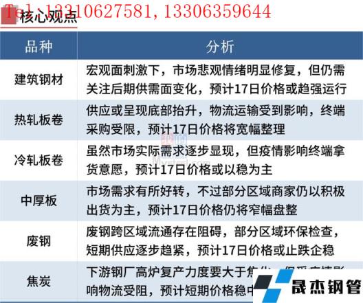 建筑厚壁無(wú)縫鋼管:3月16日,全國(guó)31個(gè)主要城市20mm三級(jí)抗震螺紋鋼均價(jià)4908元/噸,較上個(gè)交易日漲19元/噸。短期來(lái)看,在宏觀消息刺激下,市場(chǎng)悲觀情緒明顯修復(fù),或?qū)?dòng)現(xiàn)貨市場(chǎng)迎來(lái)反彈,至于反彈高度,仍需關(guān)注后期供需面變化,如北方地區(qū)近期高爐集中復(fù)產(chǎn)以及疫情對(duì)于需求端的影響。因此預(yù)期17日國(guó)內(nèi)建筑厚壁無(wú)縫鋼管價(jià)格或?qū)⒗^續(xù)趨強(qiáng)運(yùn)行為主。