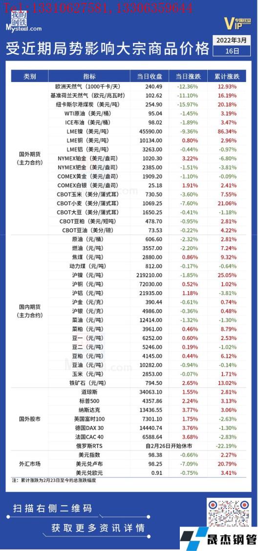 免責聲明:本網站(山東聊城晟杰無縫鋼管廠www.uldzz.cn)刊載的“受近期局勢影響大宗商品價格一覽表(3月16日)”等均源于網絡,版權歸原作者所有,且僅代表原作者觀點,本文所載信息僅供參考。轉載僅為學習與交流之目的,如無意中侵犯您的合法權益,請及時聯系刪除。本網站刊登此篇文章并不意味著本站贊同其觀點或證實其內容的真實性,我們不對其科學性、嚴肅性等作任何形式的保證。如果侵犯了您的版權,請盡快聯系我們予以撤銷,謝謝合作!