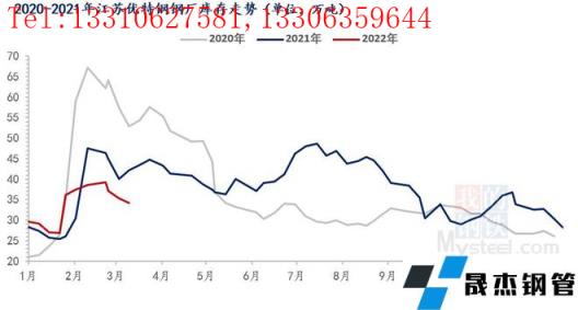 數據:江蘇優特無縫鋼管廠家總庫存34.2萬噸 環比降3.12% 同比降18.9%