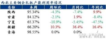 本周對西北區域15家建筑厚壁無縫鋼管生產企業同口徑調查顯示,目前西北區域15家鋼鐵生產企業38座高爐實際開工高爐35座,陜西地區新增2座高爐復產,其余區域維持現狀。高爐整體開工率為92.1%,周環比下降5.2%;高爐實際產量71萬噸,周環比減少約0.2萬噸;高爐產能利用率85.8%,周環比持平。