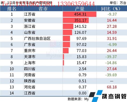 從分省市數(shù)據(jù)來看,1-2月共有4個省市洗衣機產(chǎn)量超100萬臺,其中江蘇省以產(chǎn)量454.31萬臺排名第一,安徽省產(chǎn)量351.17萬臺排名第二,浙江省產(chǎn)量141.52萬臺排名第三。