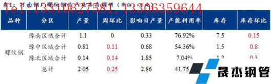1、調研數據顯示,統計的河南地區10家建筑厚壁無縫鋼管樣本無縫厚壁鋼管廠家中,河南省建材無縫厚壁鋼管廠家螺紋鋼日產量2.05萬噸,產量較上周增加0.25萬噸。檢修/限產影響建材日產量為2.86萬噸,產能利用率為41.75%,較上周增加13.89%。