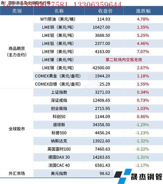 免責(zé)聲明:本網(wǎng)站(山東聊城晟杰無(wú)縫鋼管廠www.uldzz.cn)刊載的“2022年03月24日早讀:黑色期貨夜盤(pán)全線上漲,國(guó)際原油金屬期價(jià)大漲”等均源于網(wǎng)絡(luò),版權(quán)歸原作者所有,且僅代表原作者觀點(diǎn),本文所載信息僅供參考。轉(zhuǎn)載僅為學(xué)習(xí)與交流之目的,如無(wú)意中侵犯您的合法權(quán)益,請(qǐng)及時(shí)聯(lián)系刪除。本網(wǎng)站刊登此篇文章并不意味著本站贊同其觀點(diǎn)或證實(shí)其內(nèi)容的真實(shí)性,我們不對(duì)其科學(xué)性、嚴(yán)肅性等作任何形式的保證。如果侵犯了您的版權(quán),請(qǐng)盡快聯(lián)系我們予以撤銷(xiāo),謝謝合作!