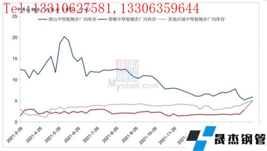 截至3月18日,京津冀地區(qū)中厚板廠內(nèi)庫存為12.3萬噸,邯鄲地區(qū)5.2萬噸,唐山地區(qū)2.8萬噸,其他地區(qū)4.3萬噸。由于交通管制,車輛進出廠困難,鋼企要求司機持有48小時核酸檢測陰性證明和行程碼綠碼以及車輛通行證三證齊全方可出入廠,基本上運輸處于停滯狀態(tài)。部分鋼企工人封控在廠區(qū),雖然保持生產(chǎn),但是班次有所減少,并且全員做核酸。綜合來看,預(yù)計月底中厚板鋼企廠內(nèi)庫存會有大幅累計,唐山中厚板鋼企廠內(nèi)庫存預(yù)計5萬噸左右,京津冀地區(qū)中厚板鋼企庫存預(yù)計達到15萬噸。
