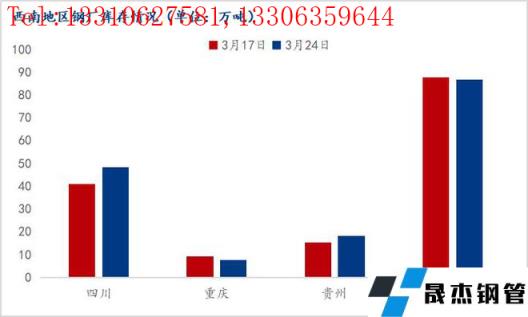 截至3月24日,西南地區建筑厚壁無縫鋼管社會庫存總量192.18萬噸,已經連續三周下降,庫存拐點基本顯現,庫存峰值于3月3日出現,為207.08萬噸,較去年庫存高點減少64.75萬噸,降幅達23.82%。主要原因是:1、西南地區價格全國洼地,北方無縫厚壁鋼管廠家對西南地區資源投放量大幅減少,尤其是川渝地區;2、廣東廣西等區域價格高企,云南無縫厚壁鋼管廠家維持低庫存運轉,加大對兩廣等周邊區域資源投放;3、受廢鋼不足、環保檢查、利潤低等因素影響,西南地區電爐企業春節放假時間較往年提前,總體產量下降;4、冬儲價格偏高,商家對春節后需求普遍擔憂,冬儲操作較為謹慎,冬儲體量較往年偏低。綜上原因,西南地區社會庫存較去年低。
