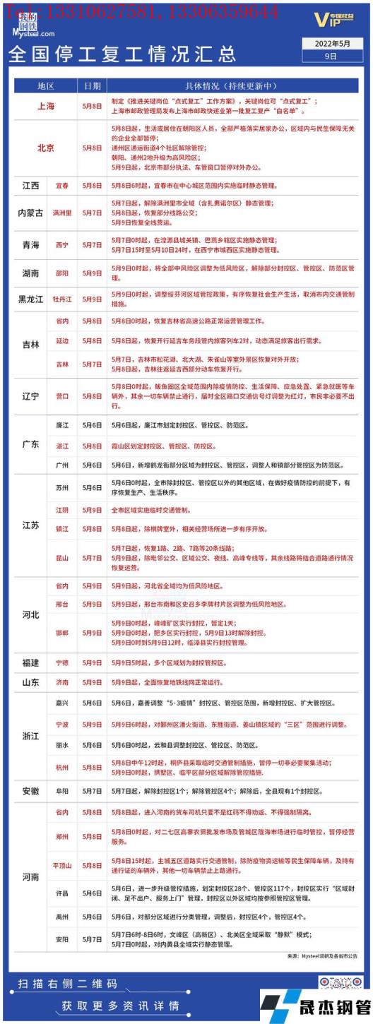 免責聲明:本網站(山東聊城晟杰無縫鋼管廠www.uldzz.cn)刊載的“疫情影響丨全國停工復工情況匯總(5月9日)”等均源于網絡,版權歸原作者所有,且僅代表原作者觀點,本文所載信息僅供參考。轉載僅為學習與交流之目的,如無意中侵犯您的合法權益,請及時聯系刪除。本網站刊登此篇文章并不意味著本站贊同其觀點或證實其內容的真實性,我們不對其科學性、嚴肅性等作任何形式的保證。如果侵犯了您的版權,請盡快聯系我們予以撤銷,謝謝合作!