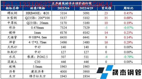 免責聲明:本網站(山東聊城晟杰無縫鋼管廠www.uldzz.cn)刊載的“建筑原材料周報(4.29-5.6)”等均源于網絡,版權歸原作者所有,且僅代表原作者觀點,本文所載信息僅供參考。轉載僅為學習與交流之目的,如無意中侵犯您的合法權益,請及時聯系刪除。本網站刊登此篇文章并不意味著本站贊同其觀點或證實其內容的真實性,我們不對其科學性、嚴肅性等作任何形式的保證。如果侵犯了您的版權,請盡快聯系我們予以撤銷,謝謝合作!