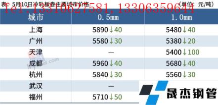 冷軋板卷:5月10日,全國24個主要城市1.0mm冷卷均價5574元/噸,較上個交易日下跌43元/噸。隨著期貨盤面連續下跌,價格也隨之下調,市場交投氛圍明顯冷清。據悉,雖然上海市場部分倉庫可以加工和提貨,但市場仍未大規模解封處于管控狀態,復工復產進度緩慢,出貨受限。成交方面,各地商家反饋成交仍舊不理想,市場需求疲軟,下游終端多觀望為主。預計11日國內冷軋板卷現貨價格或將震蕩偏弱運行。