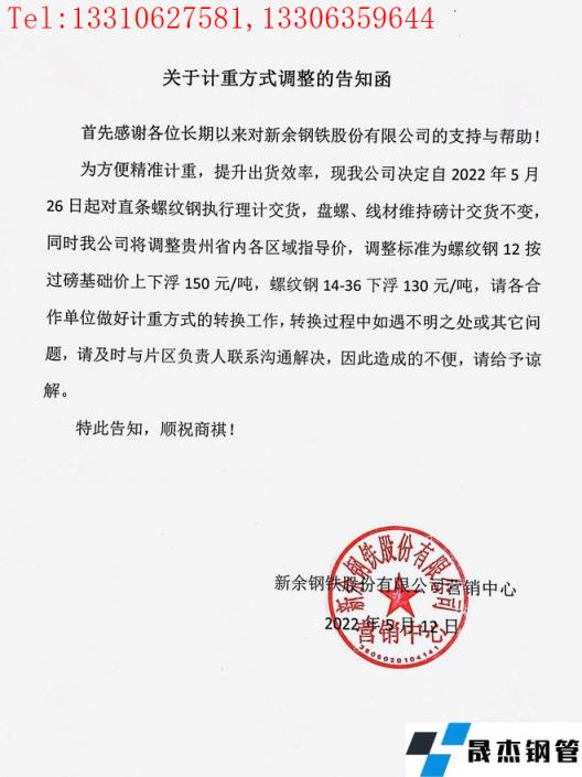 免責聲明:本網站(山東聊城晟杰無縫鋼管廠www.uldzz.cn)刊載的“新余鋼鐵股份有限公司關于對貴州區域計重方式調整的告知函”等均源于網絡,版權歸原作者所有,且僅代表原作者觀點,本文所載信息僅供參考。轉載僅為學習與交流之目的,如無意中侵犯您的合法權益,請及時聯系刪除。本網站刊登此篇文章并不意味著本站贊同其觀點或證實其內容的真實性,我們不對其科學性、嚴肅性等作任何形式的保證。如果侵犯了您的版權,請盡快聯系我們予以撤銷,謝謝合作!