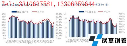 (3)盤線:本周東北地區樣本無縫厚壁鋼管廠家線盤產量累計21.8萬噸,環比上周減少0.8萬噸;達產率68%,環比上周下降3%;設備開工率73%,環比上周持平。