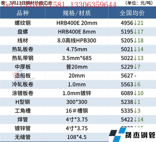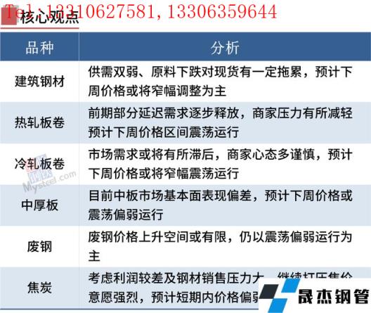 建筑厚壁無縫鋼管:5月13日,全國31個主要城市20mm三級抗震螺紋鋼均價4956元/噸,較上個交易日跌21元/噸。短期來看,目前市場主邏輯從宏觀強預期轉向需求主導的弱現實。在供需雙弱的格局下,市場心態仍然不穩,同時原料下跌也將會對現貨有一定拖累。因此預計下周國內建筑厚壁無縫鋼管價格或將窄幅調整為主。
