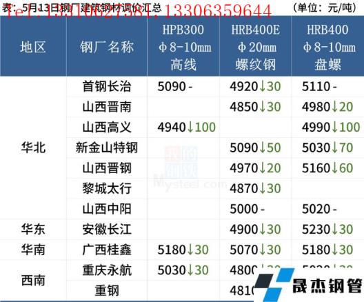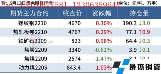 熱軋板卷:5月13日,全國24個主要城市4.75mm熱軋板卷均價5021元/噸,較上個交易日下跌14元/噸。現貨市場觀望情緒較濃,早盤漲跌互現,隨著午盤期貨走強,貿易商挺價情緒尚可,但成交并沒有好轉。目前從供需面來看,熱卷基本面依舊偏差,昨日本網熱軋板卷數據發布,產量、社庫增加,廠庫下降,表需稍有回升。需求方面由于近期期貨盤面反彈,數據有所回升,前期部分延遲需求逐步釋放,商家壓力有所減輕。綜合來看,預計近期全國熱軋板卷價格區間震蕩運行。