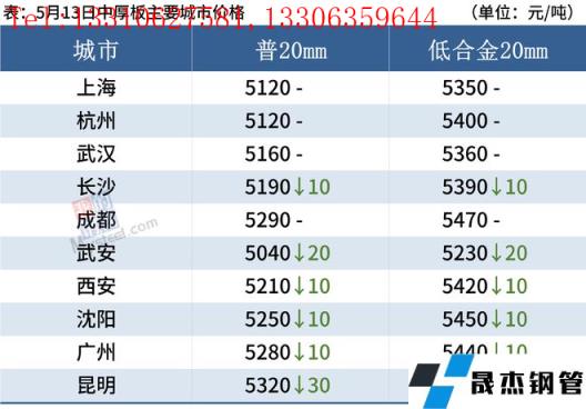 5月13日,國內厚壁無縫鋼管市場下跌為主,唐山鋼坯出廠價格穩報4660元/噸。因南方多省份受強降雨影響,今日上午鋼市成交量延續低迷,午后隨著期鋼探底回升,部分城市低位資源成交好轉。