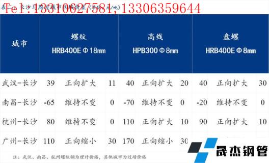 統一為理計單位后,武漢高于長沙39元/噸,南昌低于長沙65元/噸,杭州高于長沙80元/噸,廣州高于長沙110元/噸。