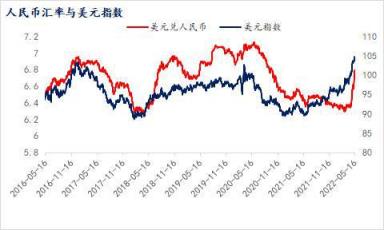 2022年3月,美聯儲宣布將基準利率上調25個基點,正式進入加息周期,5月更是宣布一次性加息50個基點,引起了全球資本市場的動蕩,而美元作為全球避險資產,在此輪加息過程中不斷走強,截至目前美元指數年內漲幅高達8.57%。相比來看,從今年4月中旬開始,人民幣匯率卻出現連續大貶值的走勢,其中人民幣離岸匯率從4月18日的6.372快速貶至5月16日的6.79,幅度達到6.3%,在岸匯率同期從6.363貶至5月12日的6.7994,幅度達到6.86%。同期歐元貶值8.2%,日元貶值12.88%,韓幣貶值7.93%,而盧布年初至今對美元升值1.8%,澳元對美元微貶2.4%。從匯率上也可以看出,在全球通脹及美元走強背景下,能源原料出口國如俄羅斯、澳大利亞等國匯率相對堅挺,而產成品出口國如中國、日本、韓國等面臨較大貶值壓力。