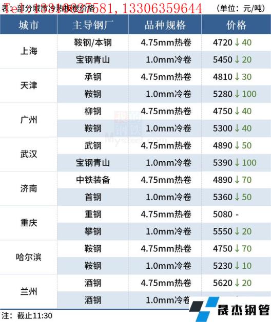 ◎天津:19日早盤冷軋市場價格下調100元/噸,1.0天鐵5290元/噸;首鋼5280元/噸,唐鋼5250元/噸,成交差。(單位:元/噸)