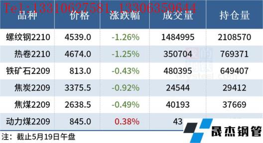 免責聲明:本網站(山東聊城晟杰無縫鋼管廠www.uldzz.cn)刊載的“2022年05月19日午報:鋼價全線下跌,黑色期貨低開高走”等均源于網絡,版權歸原作者所有,且僅代表原作者觀點,本文所載信息僅供參考。轉載僅為學習與交流之目的,如無意中侵犯您的合法權益,請及時聯系刪除。本網站刊登此篇文章并不意味著本站贊同其觀點或證實其內容的真實性,我們不對其科學性、嚴肅性等作任何形式的保證。如果侵犯了您的版權,請盡快聯系我們予以撤銷,謝謝合作!
