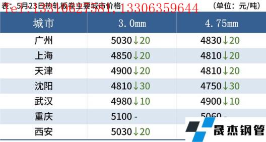 熱軋板卷:5月23日,全國(guó)24個(gè)主要城市4.75mm熱軋板卷均價(jià)4940元/噸,較上個(gè)交易日下跌8元/噸。5月22日,市場(chǎng)突傳印度將針對(duì)鐵礦石及部分鋼鐵產(chǎn)品大幅提高出口關(guān)稅,市場(chǎng)情緒得到回暖,盤(pán)面下方支撐增強(qiáng)。隨著經(jīng)濟(jì)下行壓力增大,政策面暖風(fēng)頻吹,5月5年期LPR下調(diào)15個(gè)基點(diǎn),降低購(gòu)房者置業(yè)成本、提高購(gòu)房者置業(yè)意愿的同時(shí),進(jìn)一步提振了市場(chǎng)信心,預(yù)計(jì)后期地產(chǎn)方面將持續(xù)出臺(tái)利好政策。但由于疫情的影響,其對(duì)需求的制約依然明顯,厚壁無(wú)縫鋼管的現(xiàn)實(shí)需求短期難有明顯增量。因此,24日全國(guó)熱軋板卷仍呈現(xiàn)持穩(wěn)或小幅波動(dòng)的態(tài)勢(shì)。