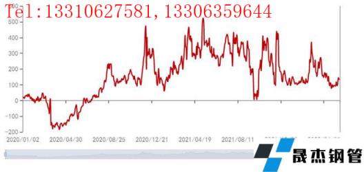 第三階段,2021年5月-2021年9月(卷螺差高位震蕩),貫徹實施碳達峰、碳中和目標,無縫厚壁鋼管廠家供給收縮,其中建筑厚壁無縫鋼管供應缺口大于熱軋卷板,螺紋鋼漲幅也大于卷板,導致卷螺差在鋼價上漲的趨勢中呈現高位震蕩。