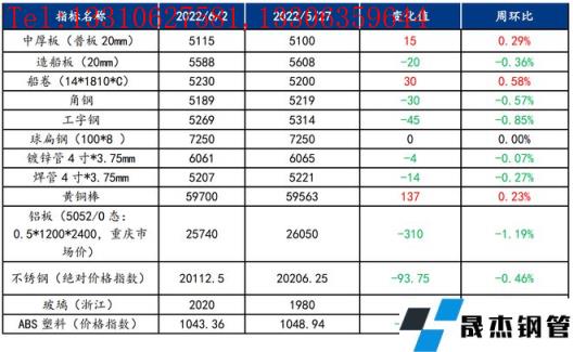 截止2022年6月2日,各原材料當(dāng)日即時價格以及價格周環(huán)比情況如下: